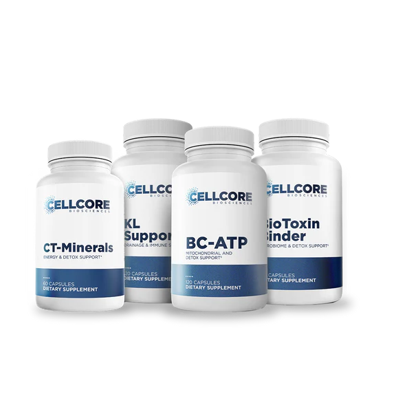 BC-ATP and CT-Minerals support mitochondrial function and energy production, which assists the body in all of its processes.* BioToxin Binder aids in a balanced gut microbiome and healthy digestion, while KL Support further assists in drainage with several herbs used traditionally to promote kidney and liver health.*