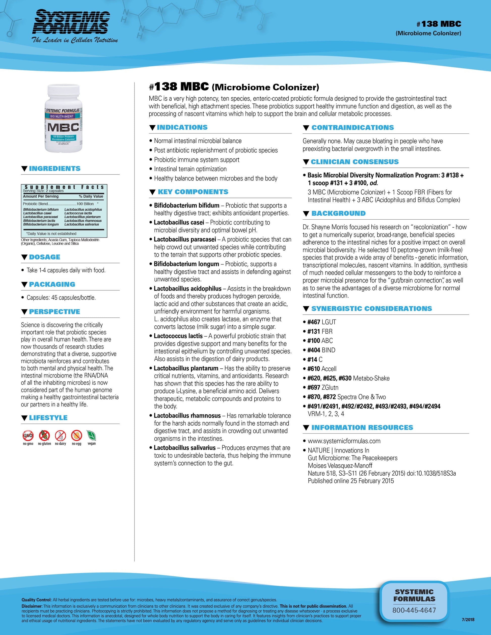 MBC is a very high potency, ten species, enteric-coated, spore form, probiotic formula designed to re-colonize the Gastrointestinal Tract microbiome with beneficial, high attachment species. These probiotics support a healthy immune function, healthy digestion, and processing of nascent vitamins which support the brain and cellular metabolic processes.