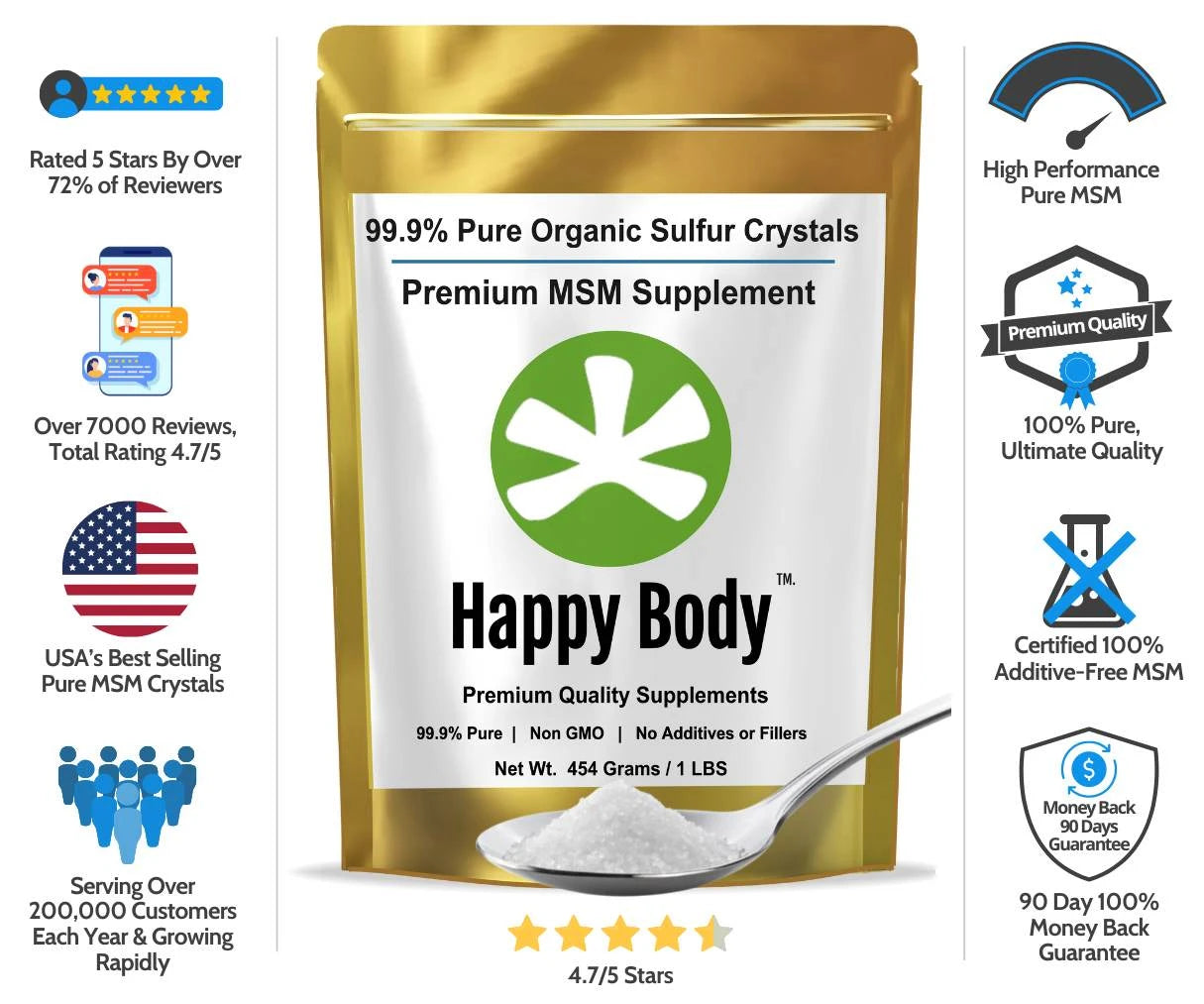 - 100% Additive-Free: Our 100% additive-free MSM crystals provide unmatched absorption.