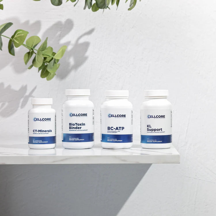 Phase 1 consists of BC-ATP, BioToxin Binder, CT-Minerals, and KL Support.* BC-ATP assists the body with ATP production, while CT-Minerals supports mental clarity, immune function, cellular repair, and detoxification.* KL Support helps maintain kidney and liver function.* BioToxin Binder lends increased support to the gut microbiome, which in turn aids healthy digestion and immune function.*
